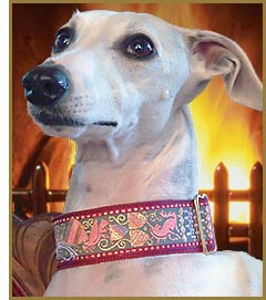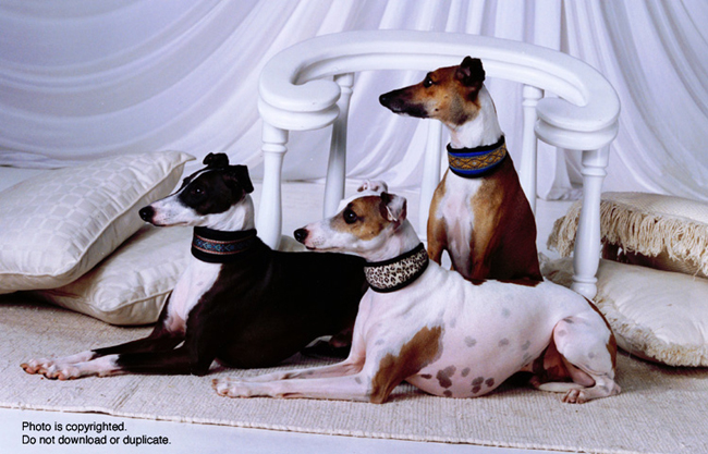 Greyhounds. Collars are decorated with rare jacquard trims, velvet,